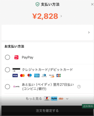 - 手順6支払い方法が表示されます。支払い方法を選択して、「注文を確定する」をタップします。