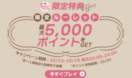 【10/19まで】最大5000ポイントゲットルーレット開催 毎日20〜24時