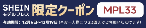 | MPL33 | 10,000円以上25%OFF 6,000円以上20%OFF 3,000円以上15%OFF | 2025年 12月19日 | モデルプレスクーポン 1人3回まで使用可能 |