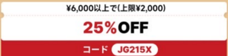| JPLINE25 | 6,000円以上20%OFF 3,000円以上15%OFF | 2026年 6月1日 | LINE公式アカウント 友達登録クーポン |