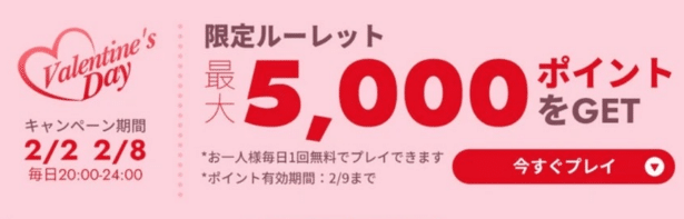 - 【2/8まで】最大5000ポイントゲットルーレット開催 毎日20〜24時