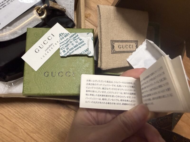 今回購入したのはGUCCIのピアス・ネックレス・バッグの3点合計15万円です。