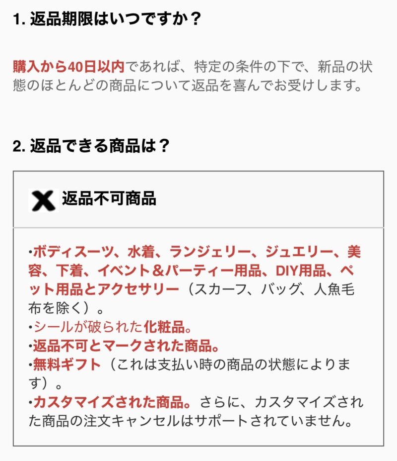 さらに言えば40日以内に返品の必要があり、うっかりしばらく使っていたらキャンセルができないようですね。悪質です…。