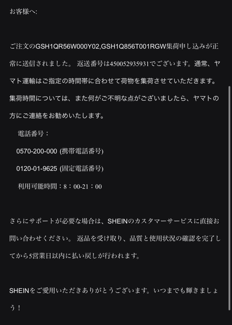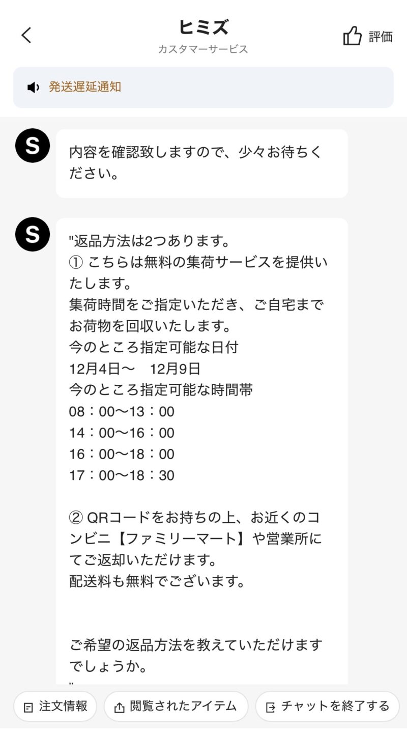 メールでの通知もきて、無事返品手続きが完了しました。この後返品した商品が正当なものであれは返金されるはずです。