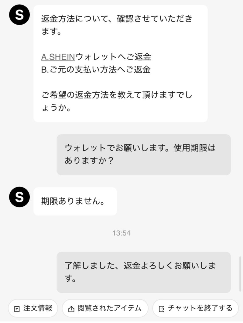 ウォレットに返金され、期限はないとのこと。友達招待キャンペーンのウォレットポイントは3ヶ月以内に出金後1週間以内に利用しないと消えてしまうためかなり嬉しいです。
