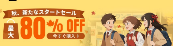 【終了】秋、新たなスタートセール 最大80%OFF 9/10まで