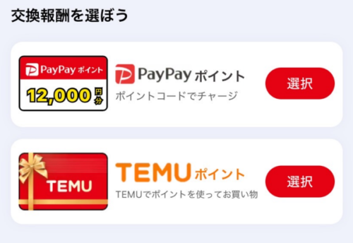 2.10,000円ポイントをPayPayポイントで受け取るか、Temuポイントで受け取るか選択します。Temuポイントは、Temuでの買い物にしか使用できないため、なるべくPayPayポイントで受け取るのがお得だと思います。この選択は、後から変更できないので注意してください。